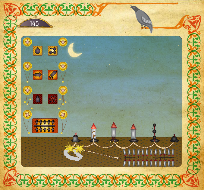 The game consists of many smaller games, during which, the player is collecting points(coins). In the last game the player can spend all the collected coins on pyrotechnics to create his own fireforks display.